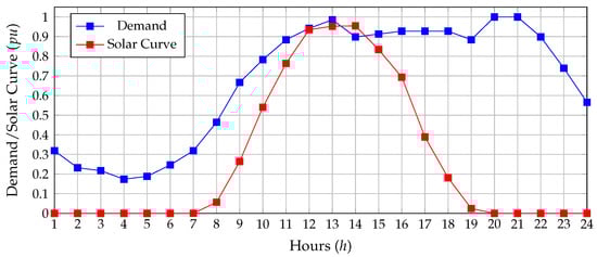 Additionally, as input for the MINLP model, this study takes the typical generation and demand behavior curves for an average day in the city of Medellín, Colombia, as shown in Figure 4 [58].