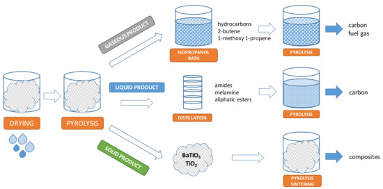 - Narula, C.K.; Kim, B.R.; Salmeen, I.T. Pyrolytic conversion of paint sludge to useful materials. U.S. Patent 5,543,367, 6 August 1996. [Google Scholar]