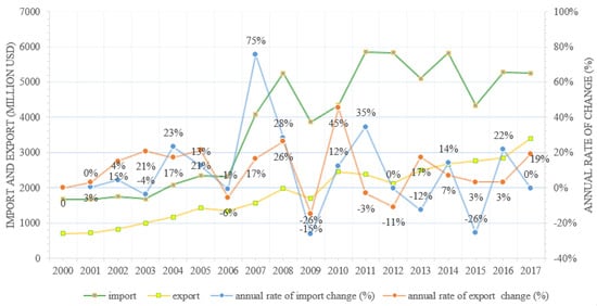 4.1.1. The Variation of Agricultural Products’ Import and Export