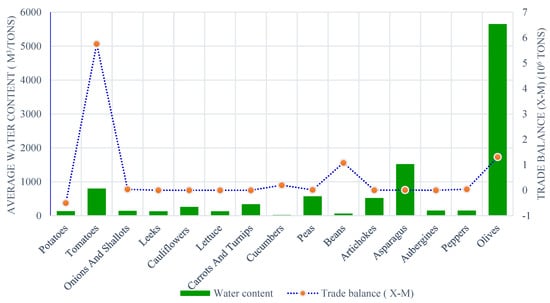4.2. Analysis of the Virtual Water Exports and Imports in Morocco’s International Trade of the Studied Crop Products