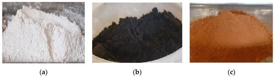 The lime used was calcium hydroxide or calcic lime, CL (commonly known as slaked or hydrated lime), named Lusical H100 (CL 90-S), with more than 80% free lime and 5% magnesium oxide, which is for construction and civil engineering applications or materials. As a complement, SCBA was used as pozzolan. It is a residue from the production of sugar and honey by the Montelimar Corporation through its cogeneration plant Green Power S.A. for the generation of clean electricity from biomass. Brick dust (BD) from construction waste was also used, which was processed at the Construction Materials Laboratory of the University of Minho. It is important to highlight that we sought to use materials with a low environmental impact, which was why cement and mineral aggregates have not been included in the studied compositions. In Figure 2, there is the presentation of the lime used (CL) and the two additional binders added, sugar cane bagasse ash (SCBA and brick powder (BD) and Table 2 shows the chemical composition of these.