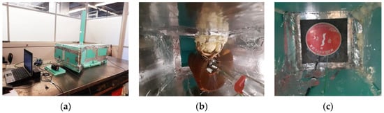 The samples were subjected to freezing and thawing cycles of 21,600 s for each cycle, and, in Figure 7, you can see the chamber used in the process until the specimen was visibly destroyed, for which 24 h visual controls were carried out. For the application of this test, the dimensions of the samples were 50 × 50 × 50 mm, being 3 specimens per mixture, with a curing time of 60 days.