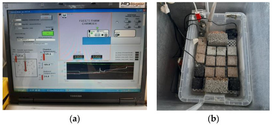 (a) Control panel; (b) specimens in freezing–defrosting chamber.