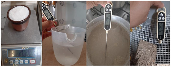The cure time of the samples was 28 days, and the exposure time was 60 days. The temperature range of the experiment was between 24 and 48 °C, with cycles of 24 h to subject the samples to the vapor of the liquid medium previously prepared, in 1.5 L of drinking water and 200 g of coarse salt.
