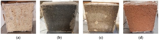 Walker et al. (2014) [6] focused on the relationship between the type of binder and the mechanical resistance and durability of the proposed mixtures. Good results were obtained in the freeze–thaw tests, where the compositions with higher amounts of hydraulic binders (66.6%) decreased their water absorption capacity and were, therefore, less affected by temperature variations and the low incidence of salts due to the high ductility of the pore walls of hemp, which adapt to the expansive pressures of salt crystallization.