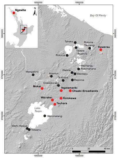 - Wilson, C.J.N.; Houghton, B.F.; McWilliams, M.O.; Lanphere, M.A.; Weaver, S.D.; Briggs, R.M. Volcanic and Structural Evolution of Taupo Volcanic Zone, New Zealand: A Review. J. Volcanol. Geotherm. Res. 1995, 68, 1–28. [Google Scholar] [CrossRef]