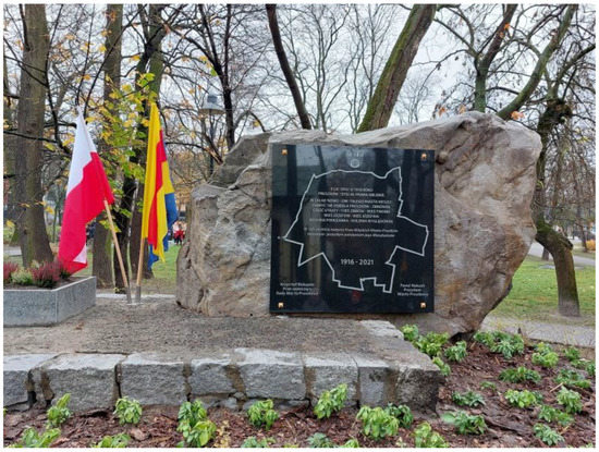 The geosite presented below (52°10′35.6″ N 20°48′22.2″ E) was created as part of the city of Pruszków’s 2022 civic budget, which involves a process of social consultations aimed at including residents in deciding on part of the city’s civic financial resources. Today, civil society is increasingly becoming a determinant of the new spatial order. It has an impact on shaping the space around it through social participation. The author of this paper, a resident of Pruszków, was the project initiator who submitted the project to the participatory budget on the terms and in the manner specified in local municipal law [51,52].