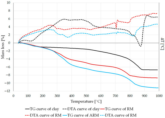 Therefore, it is clear that in cases where high alkalinity was neutralized in the samples, the remaining Fe3+ and Na+ ions were still capable of exerting their melt-forming effect, which is clearly evident at higher firing temperatures. Based on our research, it can be said that all of the red mud that undergoes the abovementioned treatment can be used in roof tile and brick production technologies. The reduced alkalinity method allows for significantly greater use of red mud (up to 30 wt%, instead of 5 wt%), as the relevant properties do not deteriorate and corrosive effects on steel structural materials are eliminated.