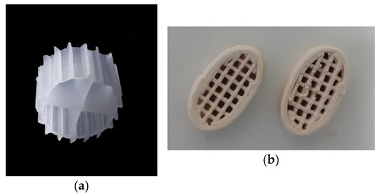 - Al-amshawee, S.K.A.; Bin, Y.; Yunus, M. Experimental investigation of bio fi lm carriers of varying shapes, sizes, and materials for wastewater treatment in fi xed bed bio fi lm reactor: A qualitative study of biocarrier performance. J. Chem. Technol. Biotechnol. 2022, 97, 2592–2606. [Google Scholar] [CrossRef]