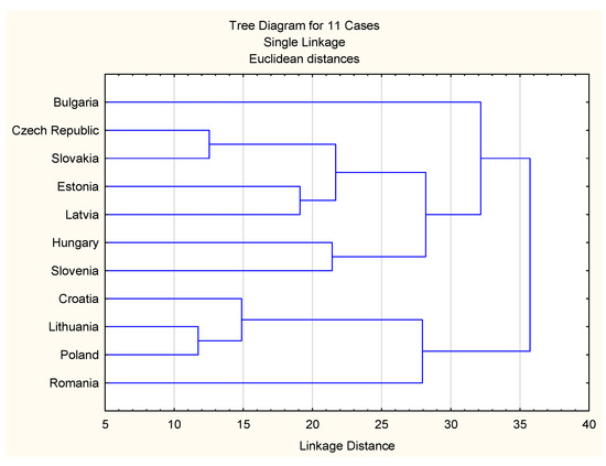 Figure 1. Cluster analysis for the examined countries of Central and Eastern Europe based on the parameters presented in Table 1.
