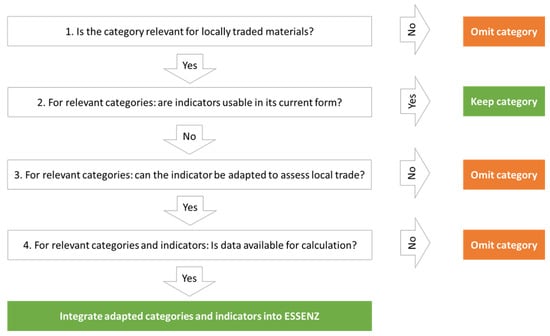 The resulting adapted method is presented in the following chapter. The categories’ compliance with social and environmental standards was not considered, as the focus was on criticality. However, the environmental impacts are assessed with a Life Cycle Assessment (LCA) [33,34].