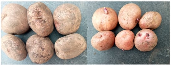 Six young and six mature potatoes (shown in Figure 4) were selected for evaluation, comparing length, diameter, and organoleptic characteristics at the beginning and end of the process. The characteristics of the potatoes are detailed in Table 4.