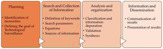 - Alzate, B.A.; Giraldo, L.T.; Barbosa, A.F. Vigilancia Tecnológica: Metodologías y aplicaciones. Rev. GPT Gestión Pers. Tecnol. 2012, 5, 13. Available online: https://www.redalyc.org/pdf/4778/477847114019.pdf (accessed on 5 July 2024).