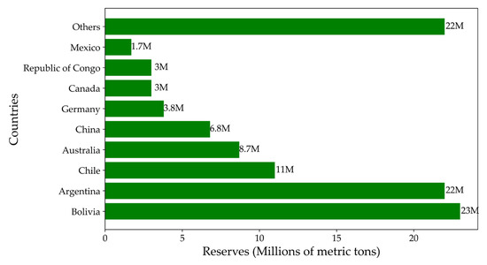 Worldwide lithium reserves (created by the author with data from [20]).