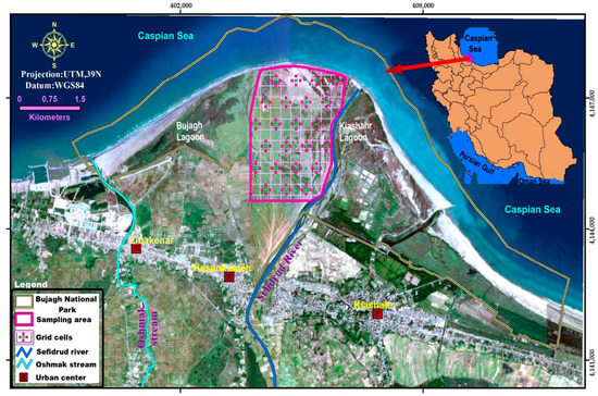 Location of the study area and sampling grids in Bujagh National Park, northern Iran.