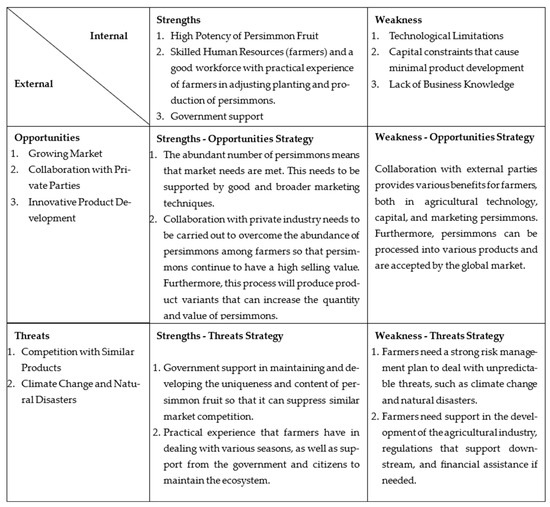 Chicago/Turabian StyleAsmy, Ayu Erfiana, Abdul Rauf, Rahmawaty, Badaruddin, and Umrotul Khasanah. 2024. "Reformulation of Persimmon Value-Added Model: Product Downstream Development Strategy for Farmers in East Java, Indonesia" Resources 13, no. 3: 34. https://doi.org/10.3390/resources13030034
