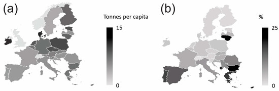 - Eurostat. Greenhouse Gas Emissions Per Capita in 2021. Available online: https://ec.europa.eu/eurostat/databrowser/view/env_air_gge__custom_7976013/default/table?lang=en (accessed on 20 October 2023).