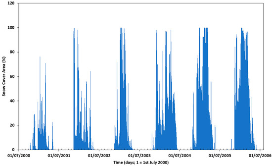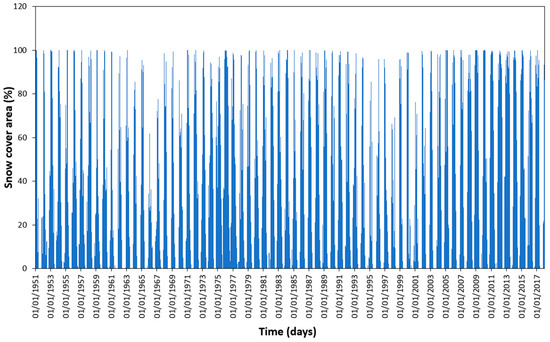 Figure 14 shows the changing area of snow cover in the Sierra Nevada mountain range over the 1951–2017 period. Days on which the entire mountain range was covered by snow are recorded as 100% snow cover. The detail of the snow-covered area is given in
