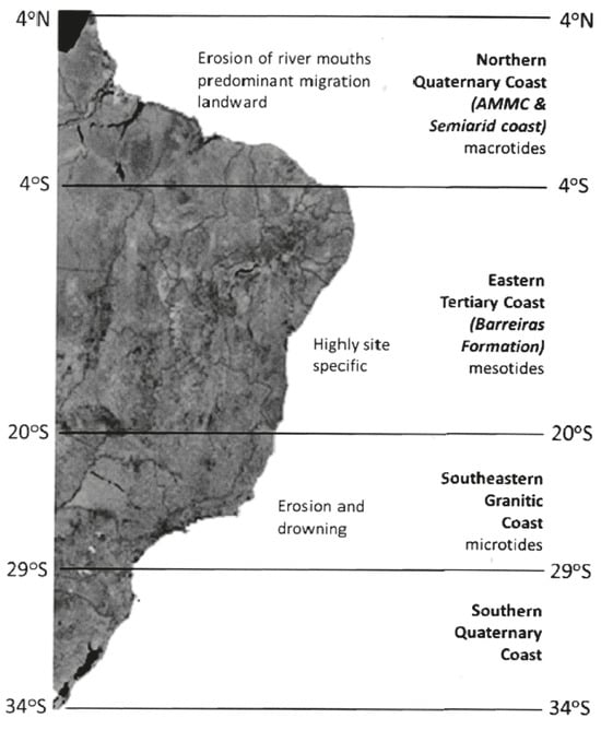 Mangroves are coastal ecosystems that play a key role in biodiversity conservation, erosion protection, and water quality maintenance. They also provide essential ecosystem services for human populations, such as fishing, tourism, and climate change mitigation. However, mangroves are threatened by various factors, such as deforestation, pollution, urbanization, and sea level rise. Brazil is considered the country with the largest area of mangroves on the planet. There are 25 thousand square kilometers, distributed along 7408 km of coast, from the extreme north of Amapá to São Francisco do Sul, in Santa Catarina [] (See Figure 1).
