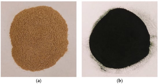 Postharvest SB parts (Sorghum sp.), including stems, leaves, and panicles, were collected from the research farm of Mie University, Japan. SB was washed and air-dried to inhibit decay. Subsequently, the air-dried SB was pulverized using a high-speed blender (YKB, AS ONE Corp., Osaka, Japan) with a rotation speed of 28,000 rpm for 1 min and sieved to obtain a particle size of less than 150 μm. Meanwhile, MA powder (Chlorella sp.) was commercially obtained from Sunlife Co., Ltd., Nagoya, Japan. The moisture contents of all biomasses were homogenized by drying in a laboratory oven (OF-300V, AS ONE Corp., Osaka, Japan) at 105 °C for 24 h. The dried SB and MA biomasses were stored in airtight sample bottles and kept in a desiccator before proceeding to further experiments (see Figure 1).