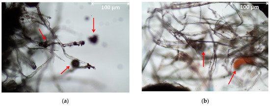 The analysis of D-PCS showed the presence of cellulosic fibres with, on average, a length > 100 µm and a thickness equal to 2–5 µm (Figure 1). These values are not very different from those from Ruiken et al. [28], who reported that the fibres of toilet paper in WW are 1–1.2 mm in length. These values are also similar to those of various types of toilet paper before use, suggesting that the dimension of the fibres remain consistent during transport in the sewer system [28].