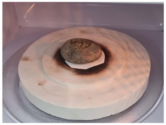 Chert gravel samples were exposed to microwave radiation from a microwave oven (Model EM823A2GU-6563, Midea Group, Beijiaozhen, Foshan, China) operating at a frequency of 2.45 GHz and a maximum power of 900 W. Microwave treatment durations included 1, 1.5, 2, and 2.5 min, under the following specified conditions: