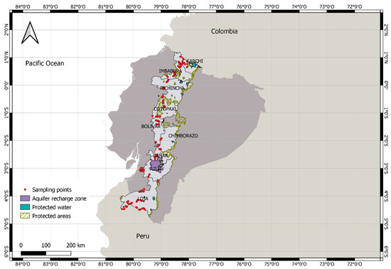 The Andean region of Ecuador has historically been one of the most exploited for mining. Taking into account current mining concessions and ongoing projects, it is estimated that more than 28% of the territory could be occupied for mining activities in the near future [8]. Currently, the Andean region has around 797 gold mining concessions distributed in nine provinces, as registered in the Mining Cadastre Web Geoportal of the Mining Regulation and Control Agency (ARCOM), a company that operates in the mining and metals sector, and in Ecuador manages operations related to regulation, mining concessions, production, and illegal mining. These concessions correspond to different levels of activity: artisanal, small, medium, and large-scale mining, and there are also mining activities belonging to the general regime. However, in the Andean region of Ecuador, there is a marked presence of illegal mining operations. Following several complaints, between January and October 2019, the ARCOM, in collaboration with the Mining Crimes Unit of the National Police and the Armed Forces, carried out a total of 418 operations to combat illegal mining, achieving a 60 percent reduction compared to 2018. However, the health emergency from COVID-19 diverted the government’s attention from this issue [2]. From a social point of view, the Andean population shows a divide between people in favor and people against; in fact, the region’s economy is based on activities such as agriculture, livestock, trade, and fishing, so gold mining is still a mainstay of the economy [15]. The purpose of this study was to investigate the concentration of (Hg) in groundwater in the Andean region of Ecuador to assess the potential risks to the environment and human health by applying an assessment approach that combined deterministic and probabilistic methods.