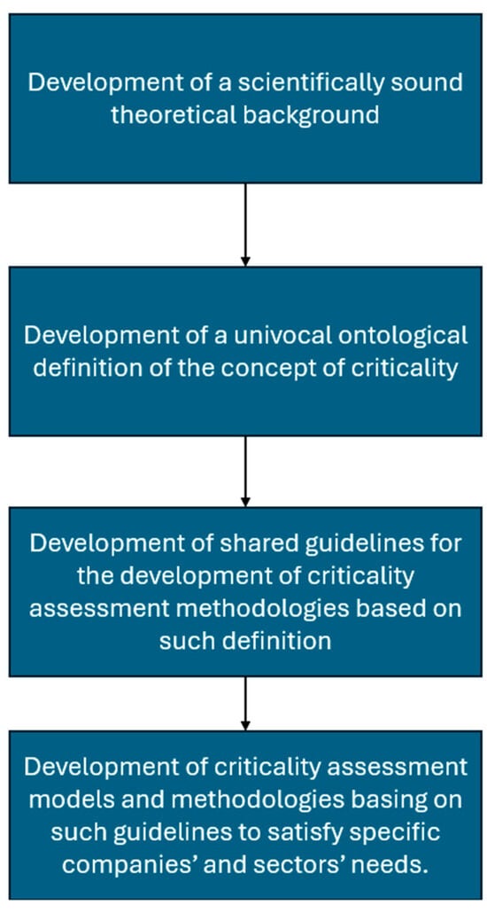 Finally, the future direction of the criticality assessment can be reflected upon. From the significant heterogeneity among different artifacts that has been highlighted throughout the work, it can be inferred that the different contexts and needs for which criticality assessment tools and methodologies are created require them to have different features, forms, and CDs. Thus, it is crucial that the scientific community makes sure to take a direction that allows different needs and priorities related to criticality assessment emerging from different industries and contexts to be satisfied. To do so, criticality assessment models and tools should be tailored for specific contexts, industries, and even companies. Nonetheless, the obvious risk of taking this direction is the proliferation of even more extremely heterogeneous assessment tools and methods, presenting deep inconsistencies among them. Thus, it is necessary to make the literature less diverse, as this work attempts to partially do, and, if possible, create guidelines about how future tailored criticality assessment tools and methodologies should be developed. The only way of developing such guidelines is to first consolidate a scientifically solid theoretical background for the criticality topic, to provide appropriate theoretical lens to those willing to developing new assessment models and methods. This ought to be one of the major topics for the future of this knowledge domain. The suggested future development of this knowledge domain is schematized in Figure 5.