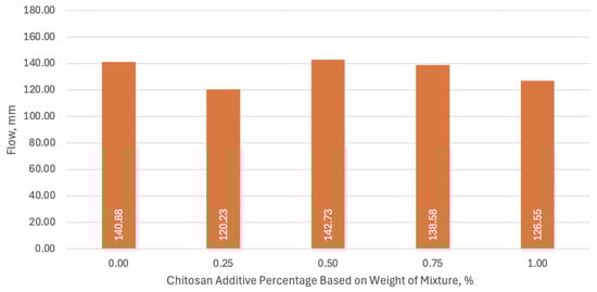 Flow table test results of samples with varying chitosan additives.