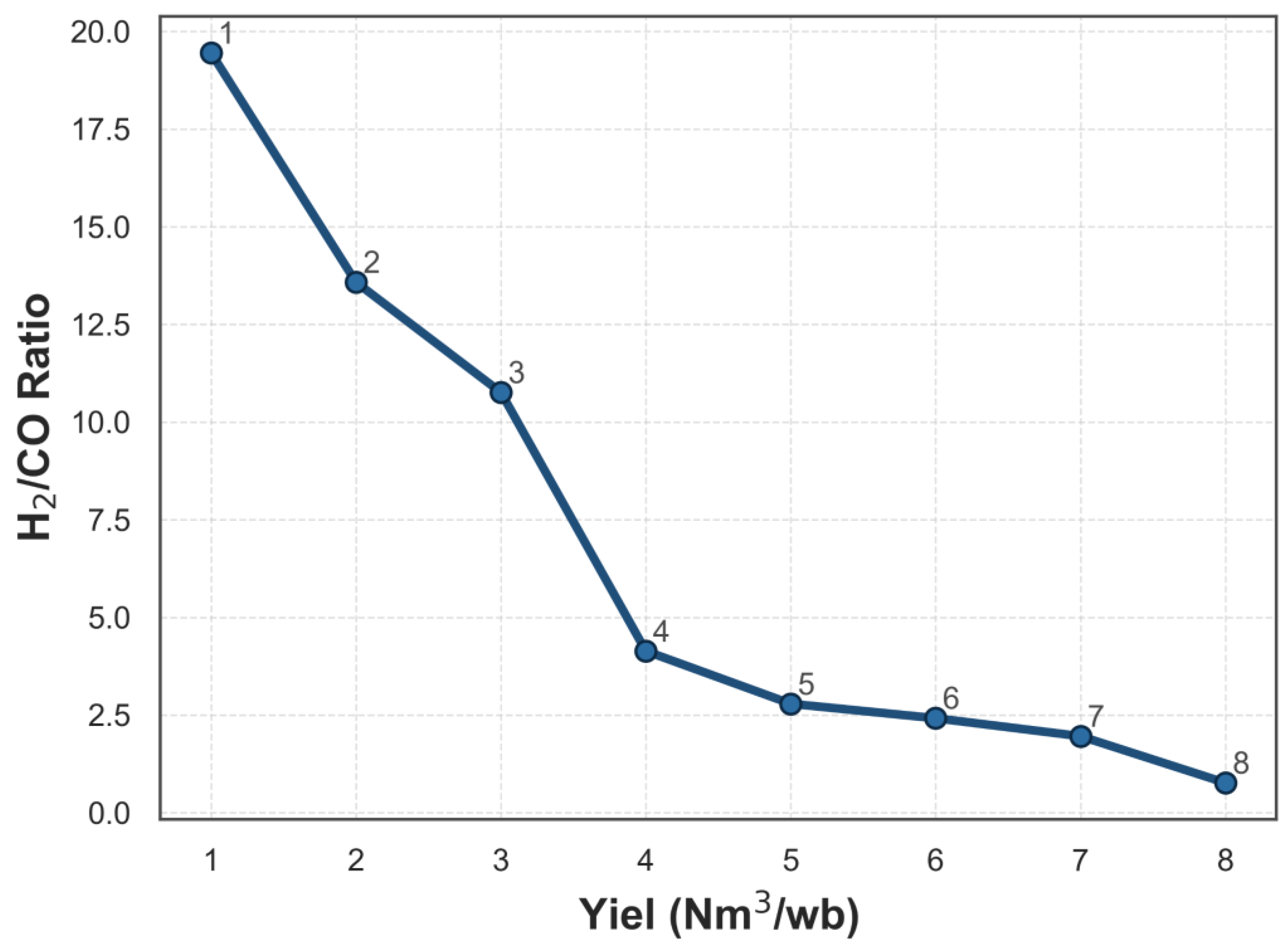 Yield (Nm3/wb) | 1 | 2 | 6 | 7 | 8 |
