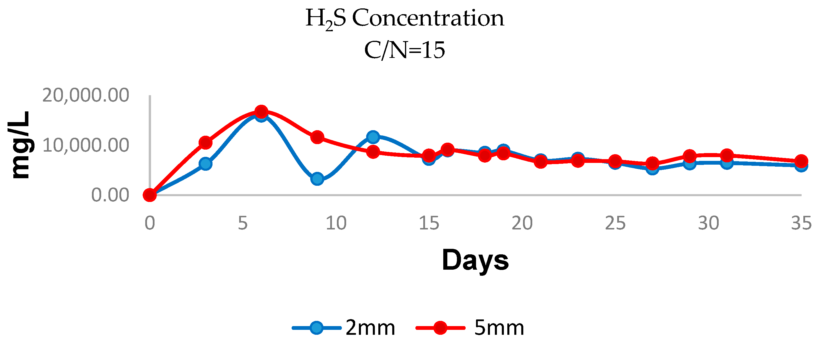 2S generation in the experimental reactor with C:N = 15 can be seen in