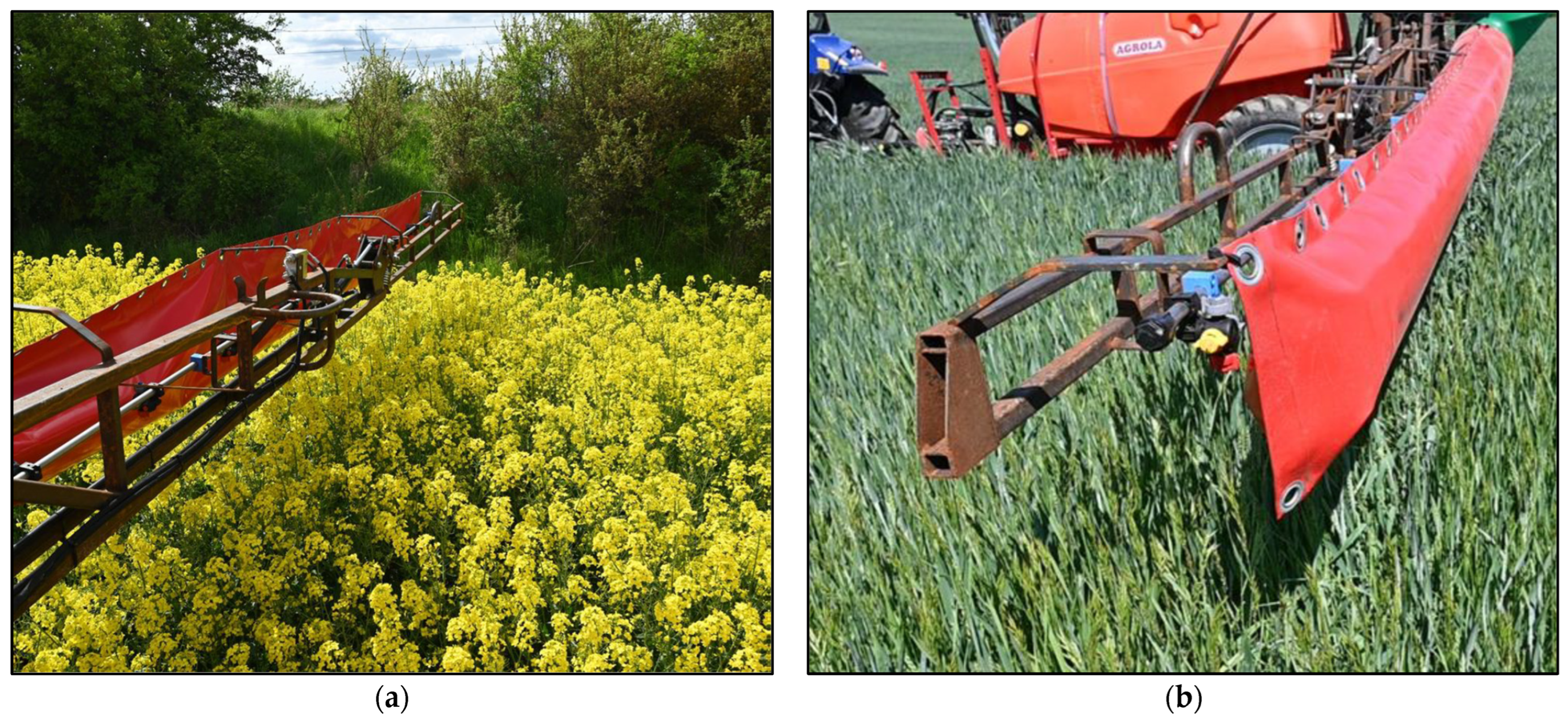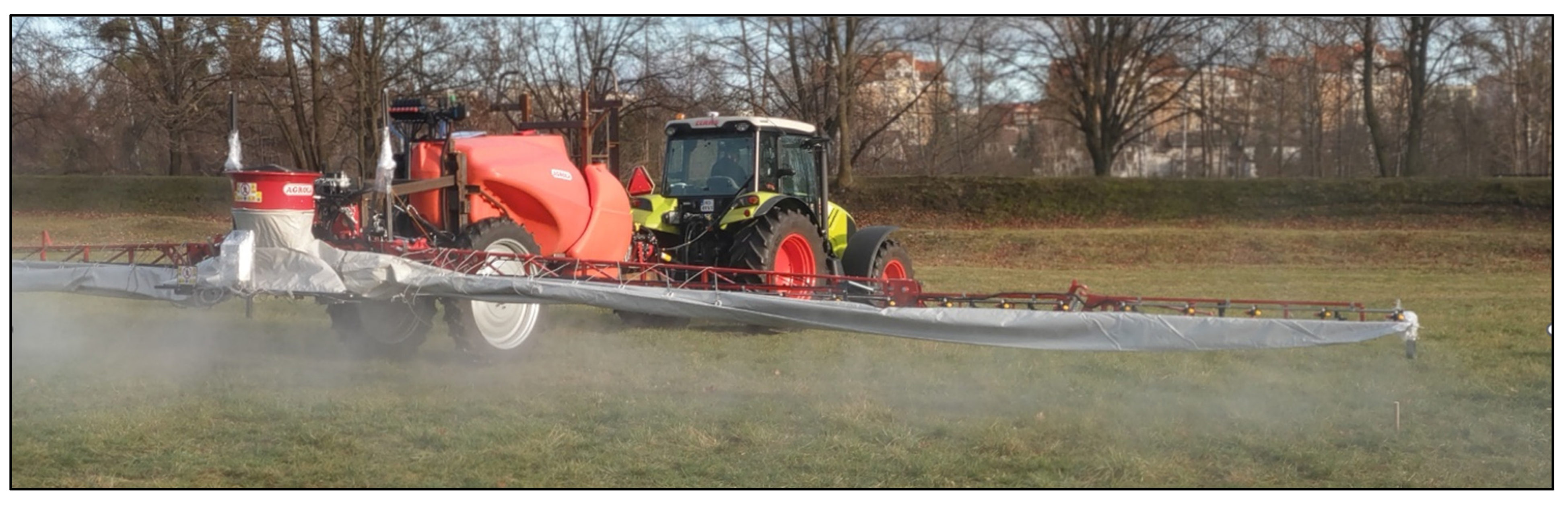 - Lipiński, A.J.; Lipiński, S.; Burg, P.; Sobotka, S.M. Influence of the instability of the field crop sprayer boom on the spraying uniformity. J. Agric. Food Res. 2022, 10, 100432. [Google Scholar] [CrossRef]
