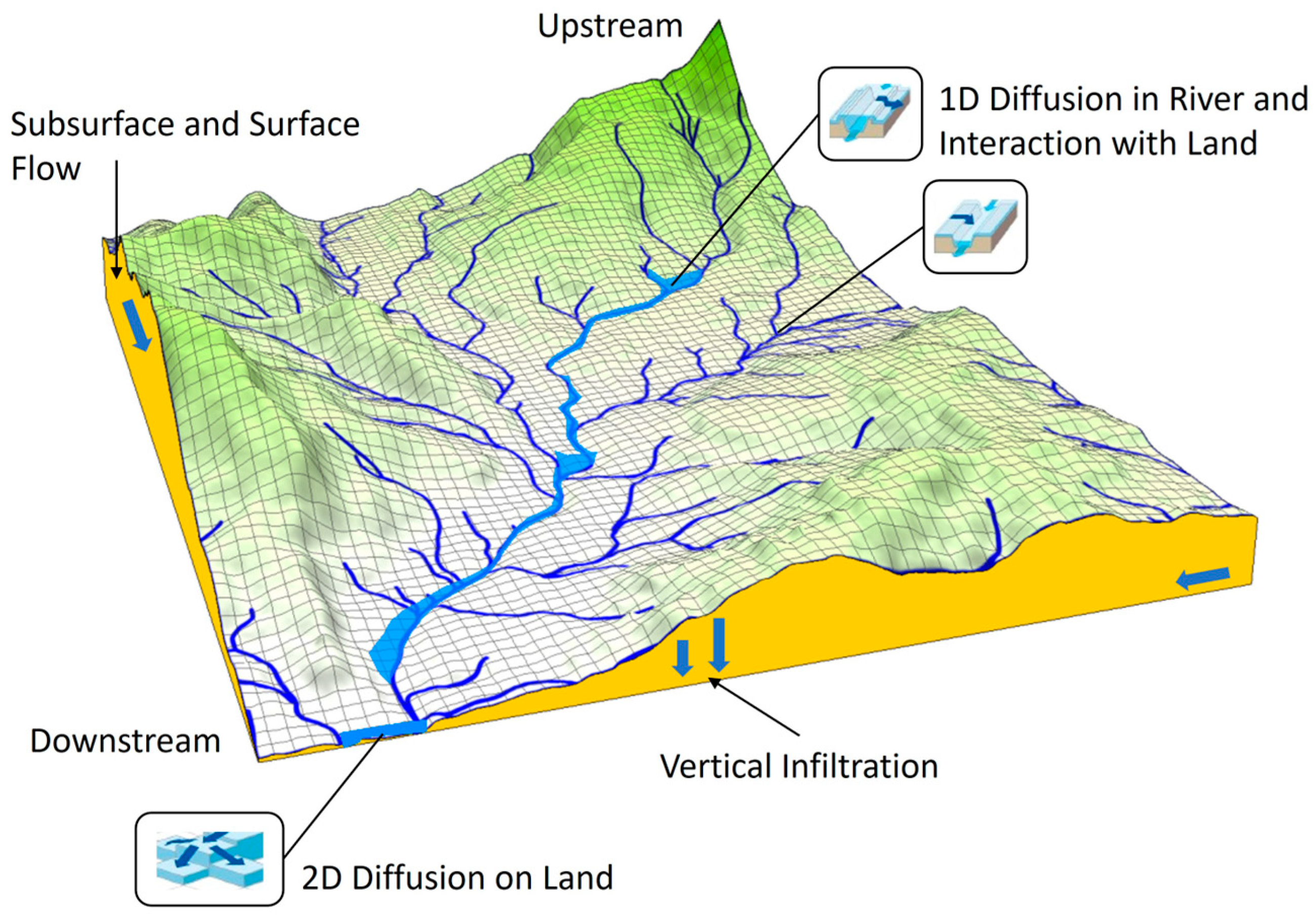 - Sayama, T. Rainfall-Runoff-Inundation (RRI) Model (updated version); Kyoto University: Kyoto, Japan, 2022. [Google Scholar]