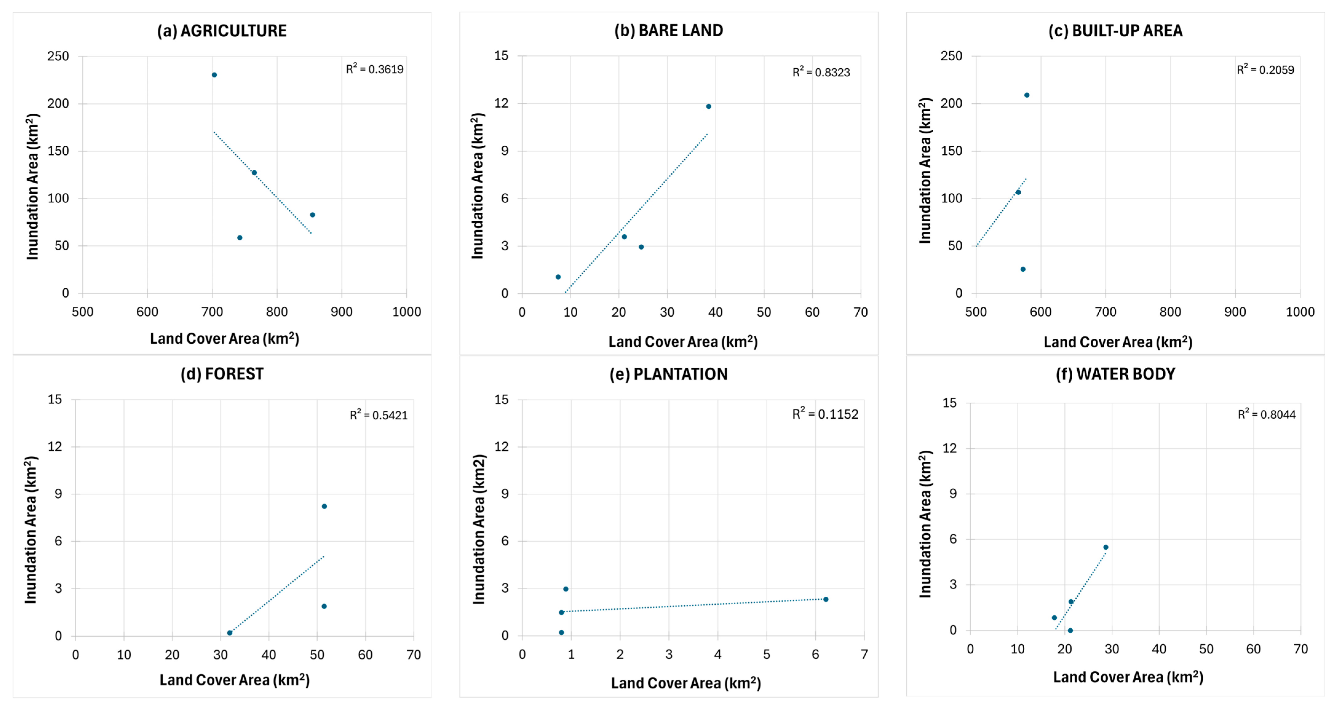 3.4. The Influence of Land Cover Changes on the Intensification of Inundation Area