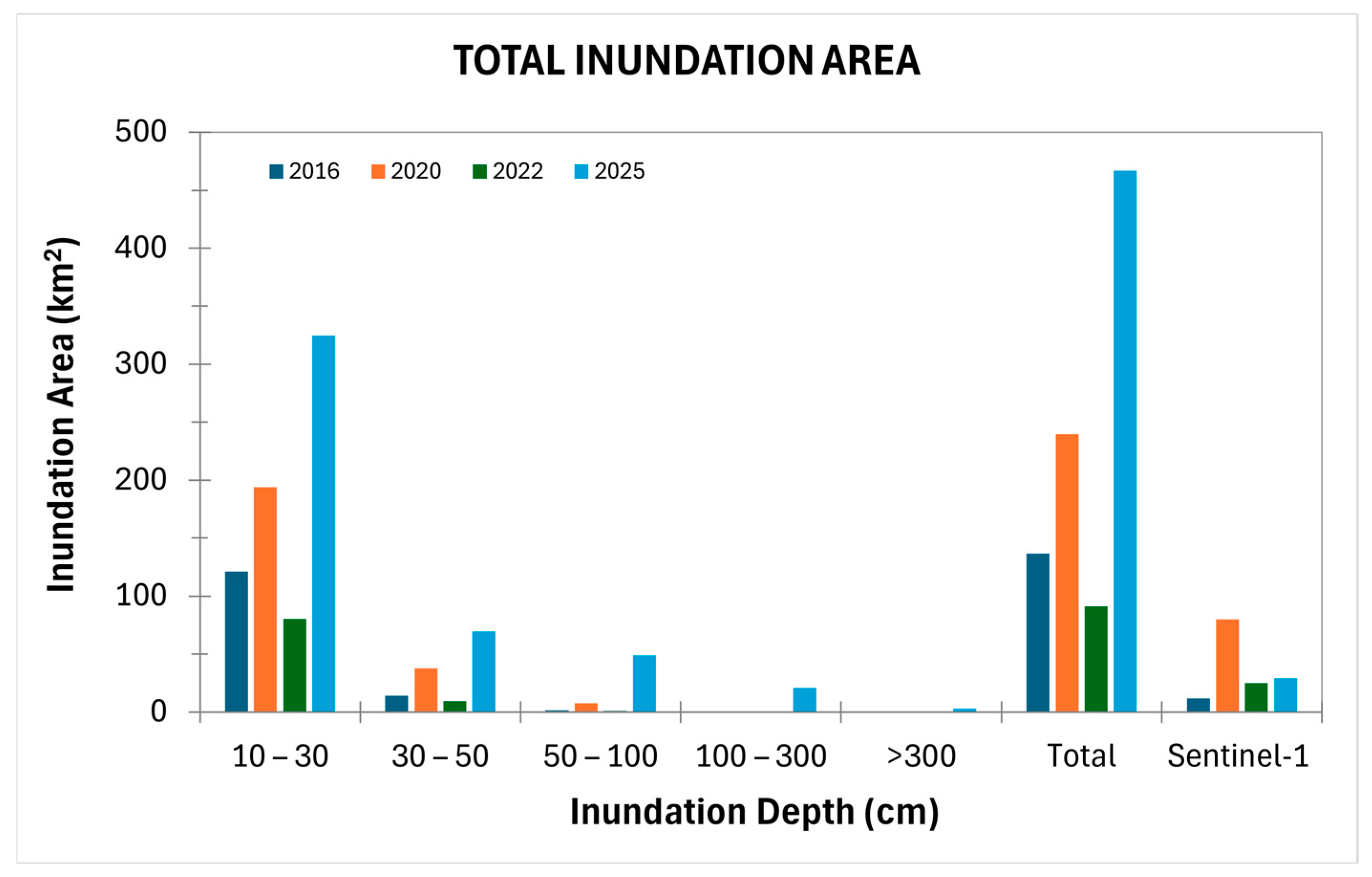 | Inundation | Sentinel-1 (10 m) | European Space Agency (ESA) Copernicus Programme | 2016, 2020, 2022, 2025 |