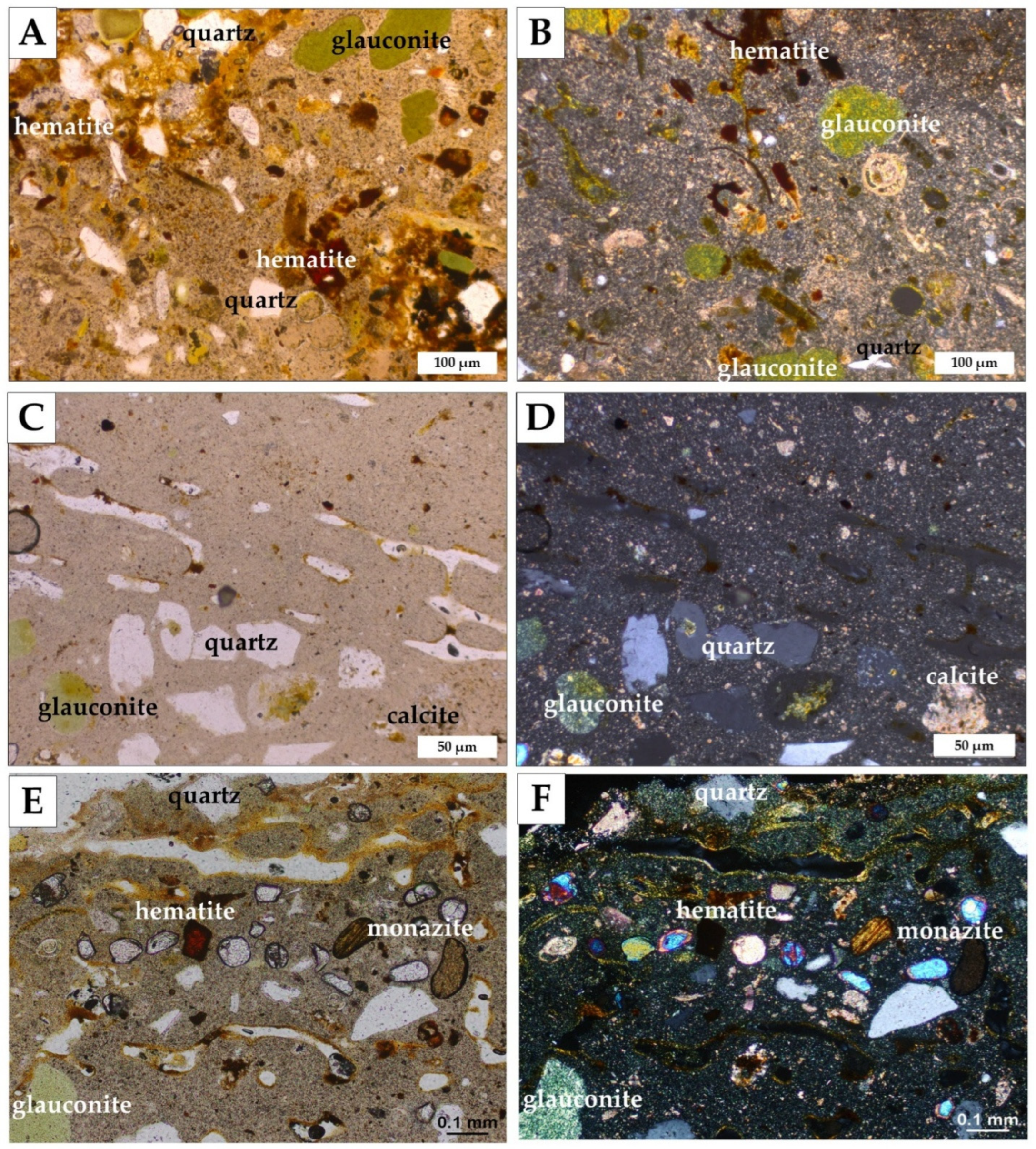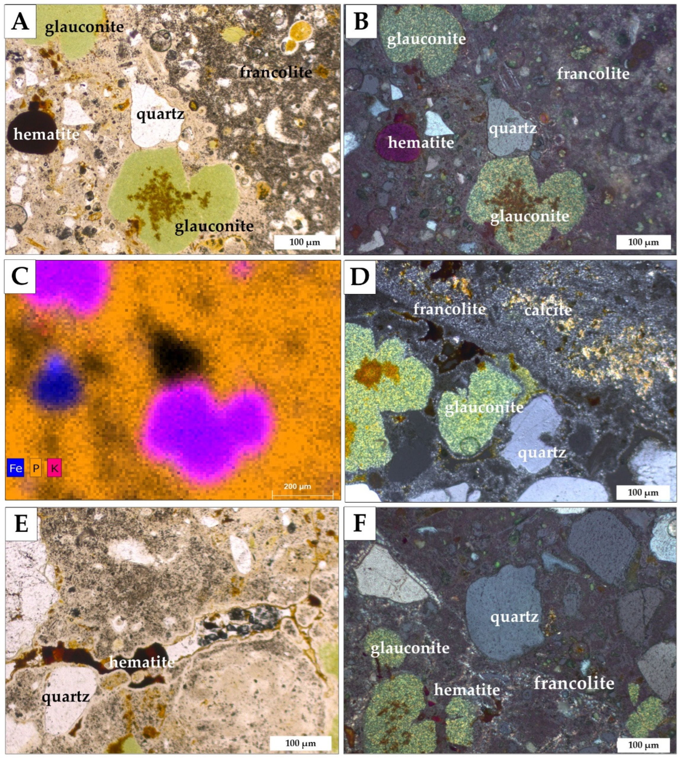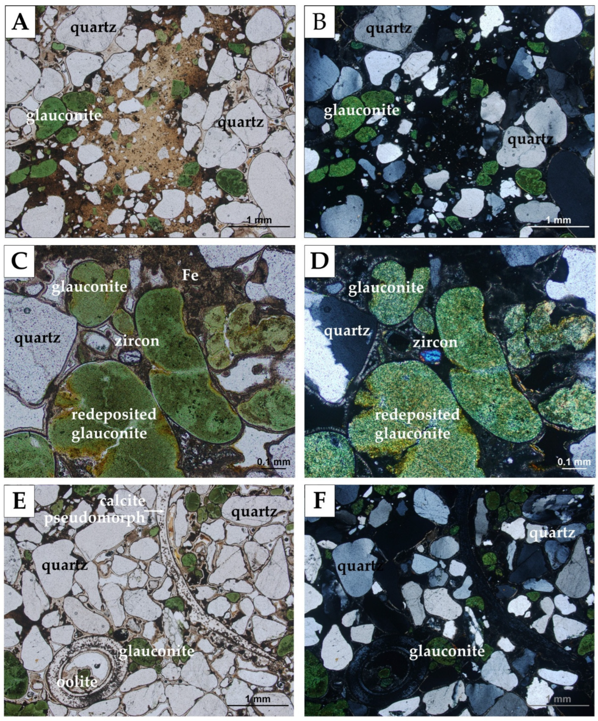 - Tribovillard, N.; Bout-Roumazeilles, V.; Abraham, R.; Ventalon, S.; Delattre, M.; Baudin, F. The contrasting origins of glauconite in the shallow marine environment highlight this mineral as a marker of paleoenvironmental conditions. Comptes Rendus Géoscience 2023, 355, 213–228. [Google Scholar] [CrossRef]
