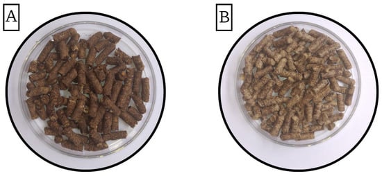 Pellets made of coffee husk (A) and parchment (B). Source: Personal archive.