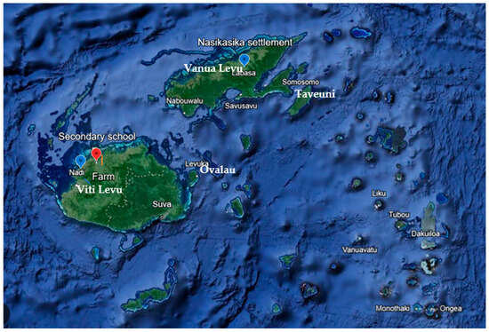 Map of Fiji showing all 3 sites of the case studies. Source: Map generated using Google Earth.