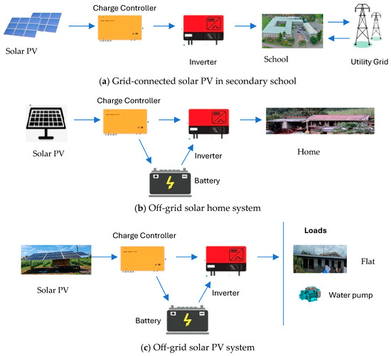 By examining three diverse case studies of CESs in Fiji, this study provides a comprehensive understanding of their potential. The first case study focuses on a grid-connected system at a school, where renewable energy technologies, such as rooftop solar PV and biogas systems, were installed. These systems function within the grid infrastructure and demonstrate key benefits, including enhanced energy stability, cost efficiency, and increased community collaboration toward energy resilience. The second case study explores an off-grid community that utilizes solar home systems, while the third examines a farm employing solar PV for irrigation. These off-grid technologies highlight solar PV’s versatility in meeting diverse needs, including lighting homes, powering essential appliances, and supporting agricultural activities. They also demonstrate the capability of solar PV to serve remote areas where grid connectivity is either financially unfeasible or technically impractical due to geographical constraints. These findings highlight the limitations of traditional grid connections in providing universal energy access and underscore the importance of decentralized energy solutions.
