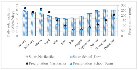 Solar PV systems are also gaining traction in agricultural sectors. Studies on the integration of photovoltaic systems in greenhouse operations, such as Zina Fresh in Nigeria, confirm their techno-economic viability using RETScreen Expert, showing annual outputs of 430 MWh, a 6.7-year payback period, and significant CO2 reduction [78]. Additional research on sustainable greenhouse agriculture in Nigeria and microgrid configurations in Palestine further demonstrates the potential for renewable energy in enhancing resilience by addressing energy and water scarcity in remote agricultural communities [79,80]. Agrivoltaics—systems combining solar energy generation with agricultural production—represent a promising solution to address resource scarcity and promote sustainable practices that benefit both the environment and society [81].