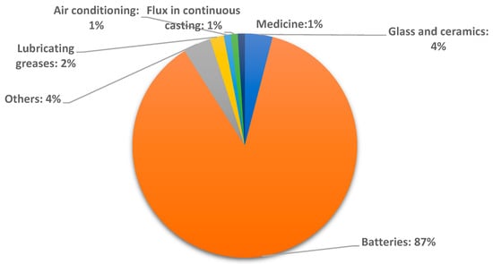 Uses of lithium in the global market (modified from [7]).