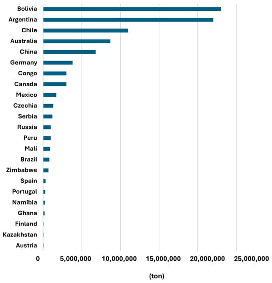 Lithium resources in the world in 2023 (modified data from [7]).