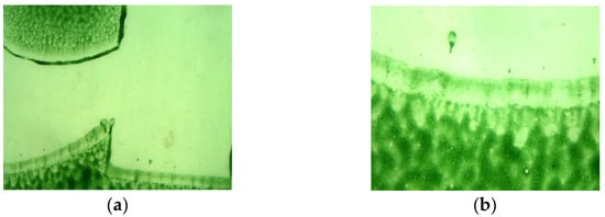 Similarly, the mortality test involving Artemia salina crustacean larvae was carried out. The organisms were obtained from a test culture created according to our own methodology, based on the experience presented in the literature []. The studies were carried out in the second/third stage of larval development, which is considered the most sensitive time. In regard to the analysed samples, 5 mL of the sample was placed into the test well, and then 10 larvae were introduced. The number of dead and/or immobilised organisms was determined after 48 h of the test (using an optical microscope, ×10 magnification). The toxicity effect E (%) was calculated for each of the samples of the tested aqueous solutions of the matrices and the control sample, which was a brine solution used for the cultivation of crustaceans (6):