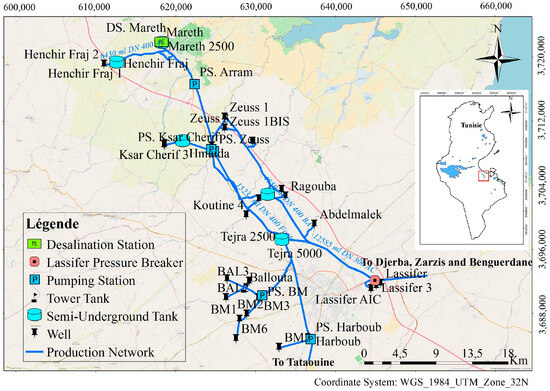 Hydraulic system of the Médenine governorate used to manage the Zeuss Koutine and the Triassic Sahel El Ababsa aquifers [57].