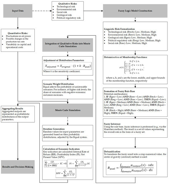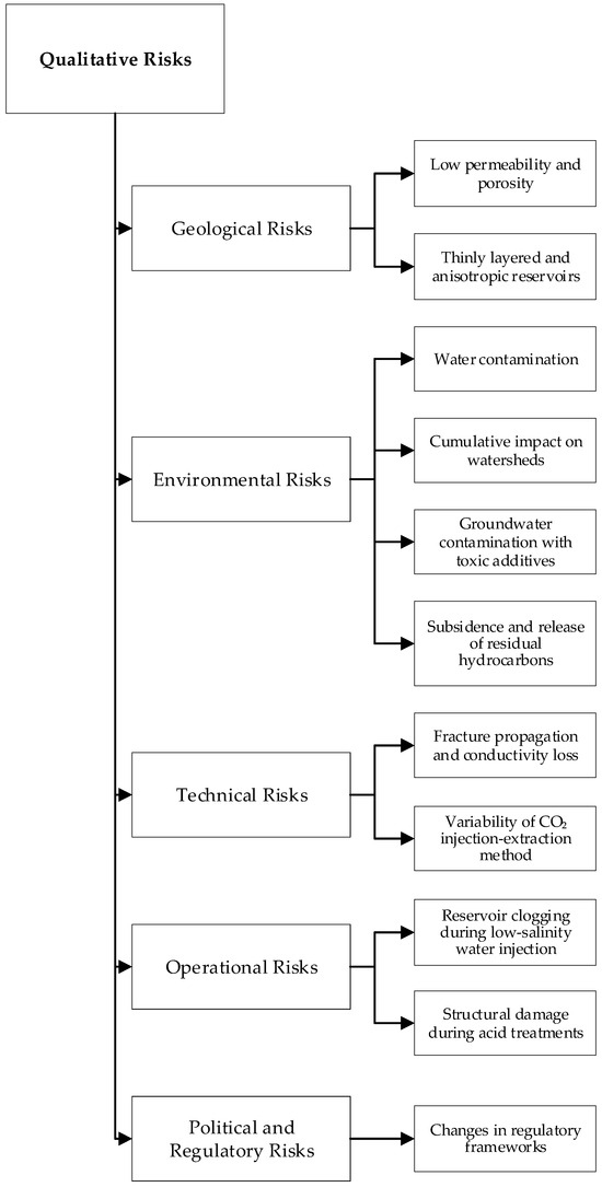 Despite profitable prospects, the development of unconventional fields is associated with a high level of uncertainty and a multitude of interconnected risks—geological, technological, economic, and environmental. Traditional risk assessment systems, long used for evaluating conventional oil and gas projects, often prove inadequate for the complexity inherent in developing unconventional reservoirs. In particular, qualitative or “soft” risks, such as environmental impacts and social license to operate, are difficult to quantify. Therefore, a more robust methodological framework is needed to account for both the stochastic nature of measurable variables (e.g., price volatility and production rates) and qualitative uncertainties (e.g., environmental regulations and public resistance) that significantly influence the economic viability of a project.