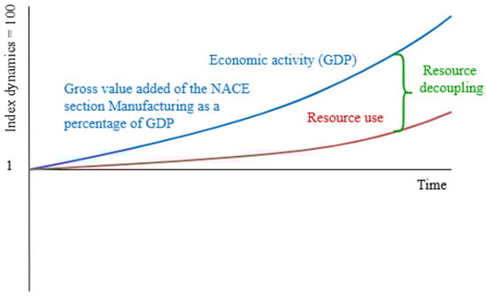 The concept of resource and impact decoupling is depicted. Source: author’s own work based on [16].