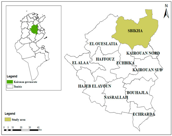 This study was conducted in the Sbikha delegation (Figure 1), located in the Kairouan governorate, where 65% of the population resides in rural areas.