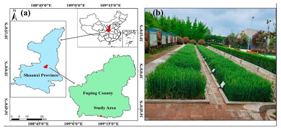 (a) Location of the study area in Shaanxi province, China. (b) Experimental field layout at the research site.