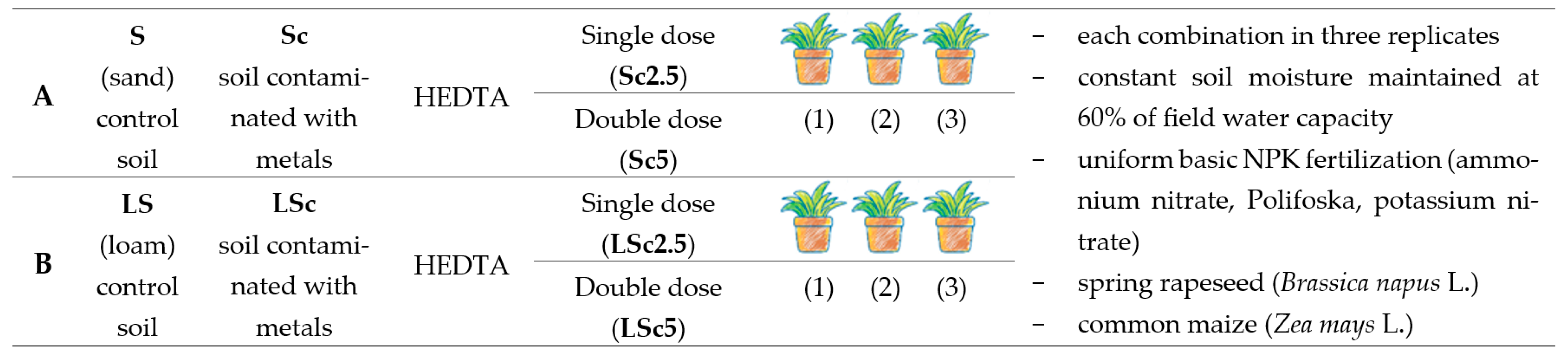 - YI and MTI indices confirmed rapeseed’s high tolerance to metals, especially in loam soil with HEDTA addition. Maize showed a higher growth rate under control conditions, but its tolerance was lower than that of rapeseed.
