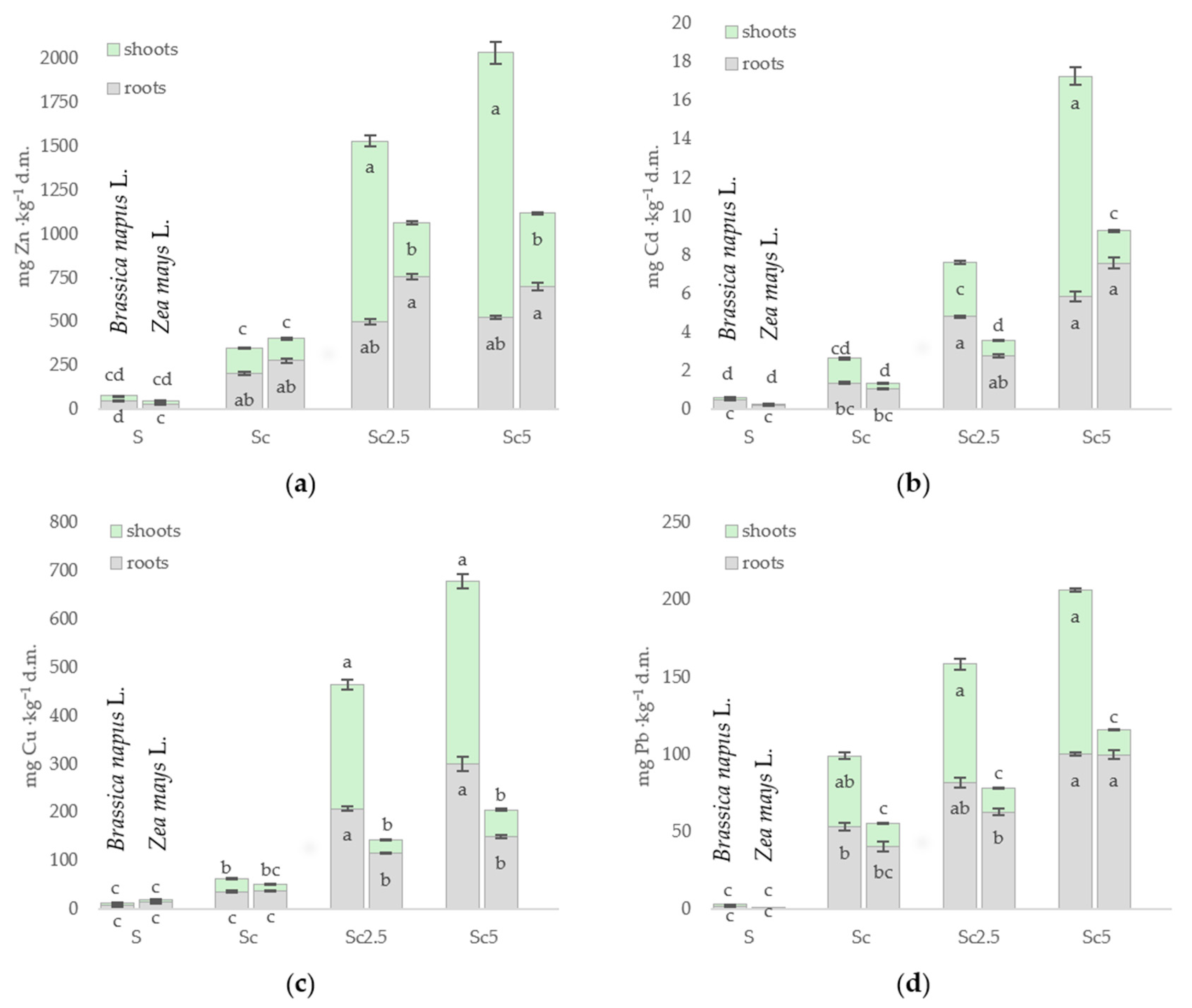 - The utility of biomass varied depending on soil conditions and HEDTA application. Rapeseed and maize showed industrial applicability for Zn, Cd, and Pb, while Cu was suitable for feed use (maize, 2.5 mmol·kg−1 dose) or industrial use (5 mmol·kg−1 dose).